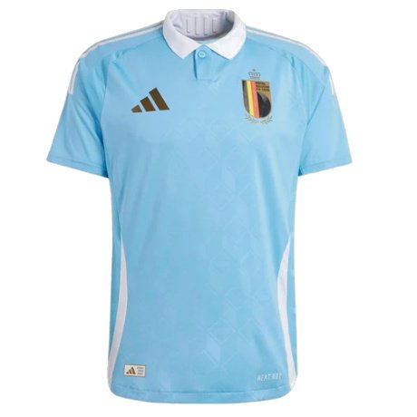 The Belgium National Team’s 2024 away jersey is a tribute to the legendary Belgian cartoonist Hergé and his most famous character, Tintin. The jersey features a sky-blue base with an Escher-like jacquard pattern, reminiscent of the classic outfit worn by the fictional journalist. Complementing the jersey are brown shorts and white socks, staying true to Tintin’s iconic look. A notable detail is the crow emblem on the back of the collar, symbolizing the presence of crows in the adventures of Tintin and adding a unique cultural touch to the kit.